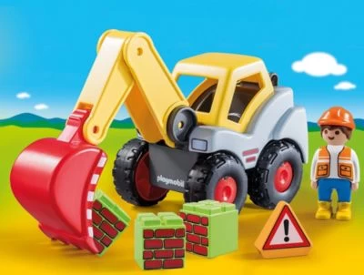 Tolle Spielideen für die kleinsten PLAYMOBIL®-Fans gibt es mit den farbenfrohen PLAYMOBIL®-1.2.3 Spielsets. Der vielseitige Schaufelbagger hat einen beweglichen Schaufelarm zum Aufladen und Abtransportieren der Bausteine. Problemlos kann der Bauarbeiter über das Dach einsteigen und schon geht die Fahrt zur Baustelle los. Das Spielset enthält eine PLAYMOBIL®-1.2.3 Figur, einen Schaufelbagger mit beweglichem Schaufelarm, Bausteine und Warnschild. Der Schaufelarm kann in verschiedenen Positionen eingerastet werden. Die ergonomischen, runden Spielsets von PLAYMOBIL®-1.2.3 eignen sich ideal für Kinder ab 1 1/2 Jahren, regen die Fantasie an und fördern Kreativität und Feinmotorik. Spielerisch die Welt begreifen mit PLAYMOBIL®-1.2.3.