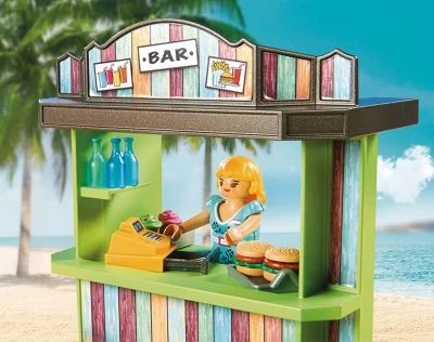 Leckere Snacks und kühle Erfrischungen für Zwischendurch gibt es beim Strandkiosk. Maße: 14 x 8 x 13 cm (LxTxH).Details:Das zweiteilige Kleid der Frau kann an- und ausgezogen werden.