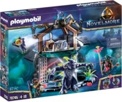 mit magischem Portal (inkl. Auslösemechanismus) zum Beschwören von Dämonen, sowie Verlies und weiteren Accessoires. Halte den bösen Magier und seinen Gehilfen auf… oder schließe dich ihnen an. Maße: 32,5 x 30 x 36cm (LxTxH) In dieser schaurigen Dämonenstätte haust Umbrathor – Zauberer der dunklen Mächte! Mit Hilfe seines magischen Portals beschwört Umbrathor unheimliche Dämonen herauf. Sein Ziel ist es, Unruhe in Violet Vale zu stiften und die Macht an sich zu reißen. Über die Strickleiter klettert der Magier ins Obergeschoss der Ruine, hier befindet sich der Altar zur Beschwörung der Dämonen. Umbrathor spricht einen Zauberspruch, schwingt seinen Fledermausstab und im nächsten Moment zerbricht die Steinplatte des Altars und ein teuflischer kleiner Dämon springt hervor. Schnurstracks befreit das böse kleine Kerlchen seinen großen Dämonenfreund aus dem Verlies und die beiden machen sich aus dem Staub. Von diesen hinterlistigen Kreaturen ist sicherlich nichts Gutes zu erwarten! Das Spielset enthält die dunklen Novelmore-Zauberer Umbrathor und Vermithor, ein zweistöckiges Dämonenportal mit Verlies und Altar, zwei Dämonen, einen Fledermausstab, Maske und viele weitere magische Extras. Die Platte des Altars kann über einen Mechanismus weggesprengt werden. Figuren: 2 Magier, 1 großer Dämon, 1 kleiner Dämon Zubehör: 1 Helm, 1 Umhang, 2 Paar Armmanschetten, 1 Gürtel, 1 Gürtelschnalle, 1 Amulettkette, 1 Diadem, 1 Totenkopf, 1 Buch, 1 Feder, 1 Räucherkessel, 1 Stehpult, 1 Phiola, 2 magische Steine, 2 kleine Fakeln, 3 große Fackeln, 1 Pergamenttasche, 1 Plan, 2 Zauberstäbe, 1 Steinplatte, 2 Leuchter, 3 Zierdeelemente, 1 Strickleiter