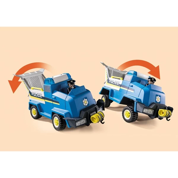 | Inhalt/Ausstattung | 1 Ducklas, 1 Polly Police, 1 Polizei-Auto mit Kipplenkung und Licht- und Soundmodul sowie klappbarem Heckspoiler, Seilwinde und Staufach, 1 Mini-Polizeiauto | ||