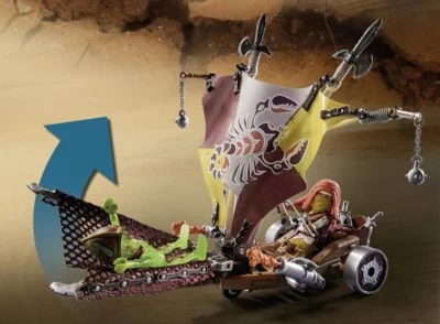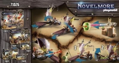 Für alle Novelmore-Abenteuer-Fans geht es jetzt auf eine Mission durch Sal’ahari Sands. Mit dem Spieleset PLAYMOBIL® Sa’lahari Sands – Dünensurfer (71026) kommen neue und große Abenteuer auf die Novelmore-Helden zu. Das Wüstenvolk der Ahari hat sich dem unwirtlichen Lebensraum Wüste perfekt angepasst. Der schnelle und wendige Dünensurfer kann, dank des Segels, mit Windkraft durch die Dünen sausen. Auf der Suche nach Skorpionen im heißen Wüstensand ist das ausklappbare Netz eine sinnvolle Erfindung der Ahari. Mit dem Netz wird der Wüstensand durchgesiebt und die Skorpione können gefangen werden, um das wertvolle Gift im Kampf gegen die fiese Skelettarmee zu gewinnen. Aber auch der überraschte Skelettkrieger landet im Netz. Wird er sich mit seiner Totenkopfkanone zur Wehr setzen können? In dem Spieleset sind 3 Spielefiguren und viele Zubehörteile enthalten. Der Dünensurfer ist mit einer neuen Neigungstechnik zur Lenkung ausgestattet und sorgt für dynamische Spielemomente im heißen Wüstensand.