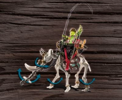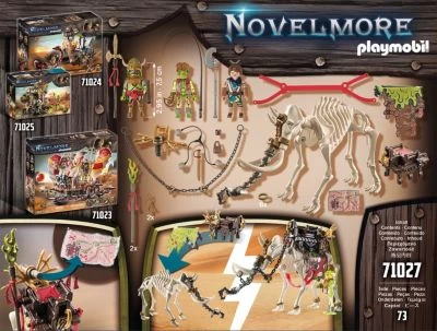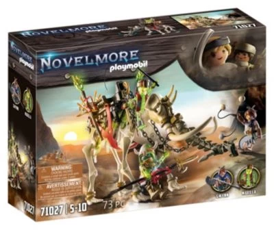 Jetzt wird es ernst! Die Skelettarmee sammelt sich und macht sich bereit zum Angriff. Mit dem Spieleset PLAYMOBIL® Sa’lahari Sands – Mammut Attacke (71027) stellt sich Gwynn dem Angriff mutig in den Weg. Aber die Skelettarmee hat eine ihrer gefürchtetsten Waffen dabei: Das große Kampfmammut ist perfekt für die kriegerischen Einsätze ausgestattet und Maxilla, der fiese Skelett-Krieger sitzt im Sattel. Wird es Gwynn gelingen den Angriff abzuwehren? Auch sie hat natürlich ihre Waffen dabei – aber der Kampf ist unfair, denn die Mammuts gehen keinem Konflikt aus dem Weg. Mit vielen Zubehörteilen, wie Waffen und Ausstattung für das Mammut ist spannende Spiele-Action garantiert. In Kombination mit anderen Novelmore Set entstehen große Spielwelten für die kleinen Fans.