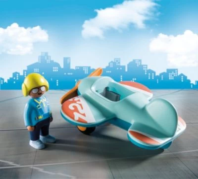 Der Pilot hat sein Flieger-Outfit angezogen und das Flugzeug steht zum Start bereit an der Startbahn. Welche Abenteuer erwarten ihn auf seinen Flügen? Mit diesem 2-teiligen Spieleset PLAYMOBIL® Flugzeug (71159) können kleine Flugzeug-Fans erste Geschichten erzählen und kreative Abenteuer erleben. Die 1,2,3 Sets sind für die kleinen Spiele- und Sammelfans ab 1,5 Jahren geeignet und unterstützen die Entwicklung der feinmotorischen Fähigkeiten, das Erkennen und Benennen von Zusammenhängen und die Kreativität.