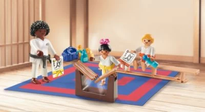 – mit gut ausgestatteten Spielefiguren Karatelehrerin, Karateschülerin und Karateschüler