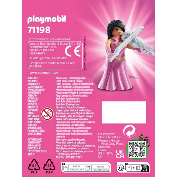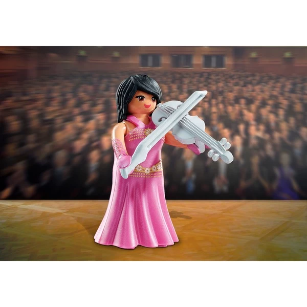 Mit den PLAYMOBIL-Figuren aus der Serie PLAYMO-Friends wird es nie langweilig! Die Violinistin sieht in ihrem pinken Kleid äußerst elegant aus. Die Violine trägt sie mit rechts und hat auch bei schwierigen Passagen stets den Bogen raus.Art.-Nr.: 1888940