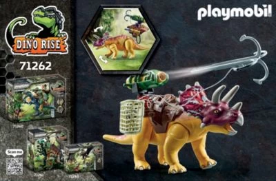 Dino-Fans aufgepasst! Mit diesem coolen “Triceratops”-Spielset (71262) aus dem Hause PLAYMOBIL® ist besonders actionreicher Kampfspaß garantiert! In dem Set sind zwei verfeindete Spielfiguren enthalten. “Milow” ist mit Pfeil und Bogen bewaffnet und kämpft gegen seinen Gegner, der auf dem rücken eines gefährlichen Triceratops sitzt und mit zwei Kanonen, einem Enterhaken-Geschoss und zwei Raketen-Geschossen bewaffnet ist. “Milow” muss nun seine Schusskünste unter Beweis stellen, um eine Chance gegen dieses gefährliche Duo zu haben!