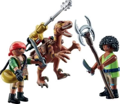 Im Dschungel von “Dino Rise” findet stets Actionreiche Kämpfe statt! In dem PLAYMOBIL®-Set “Deinonychus” (71264) ist die Spielfigur “Jaden” enthalten, der die Wildnis vor der gefährlichen Gegenpartei schützen soll. Bei seiner Mission trifft er auf einen gefährlichen Kämpfer, der sogar einen Deinonychus mit einer Waffe ausgestattet hat. Wer diesen Kampf wohl gewinnt?